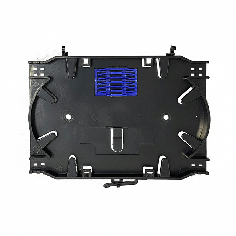 Versatile Splicing Capacity Equipped with 6 dedicated splice slots, the tray supports the organized storage of up to 12 single fusion splices (when double-stacked), providing flexibility for various fiber density requirements.