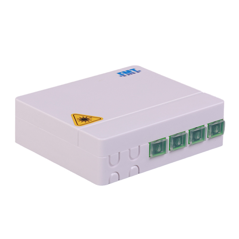 The outlet supports termination, splicing, and storage for fiber optic cable systems.